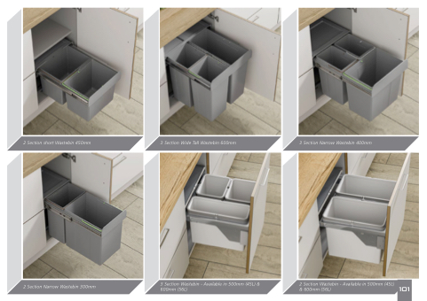 2 Section short Wastebin 450mm 3 Section Wide Tall Wastebin 600mm