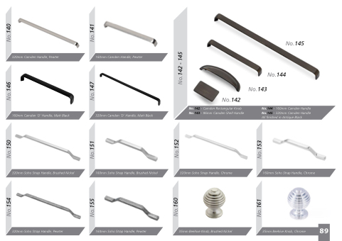 No.144 - 160mm Camden Handle No.145 - 320mm Camden Handle All nished in Antique Black
