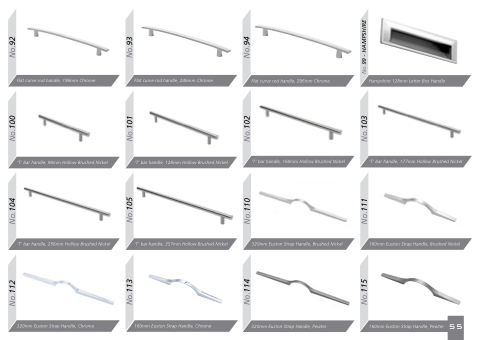 ‘T’ bar handle, 96mm Hollow Brushed Nickel