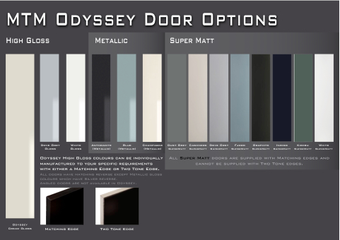 Odyssey High Gloss colours can be individually manufactured to your speci c requirements with either a Matching Edge or Two Tone Edge.